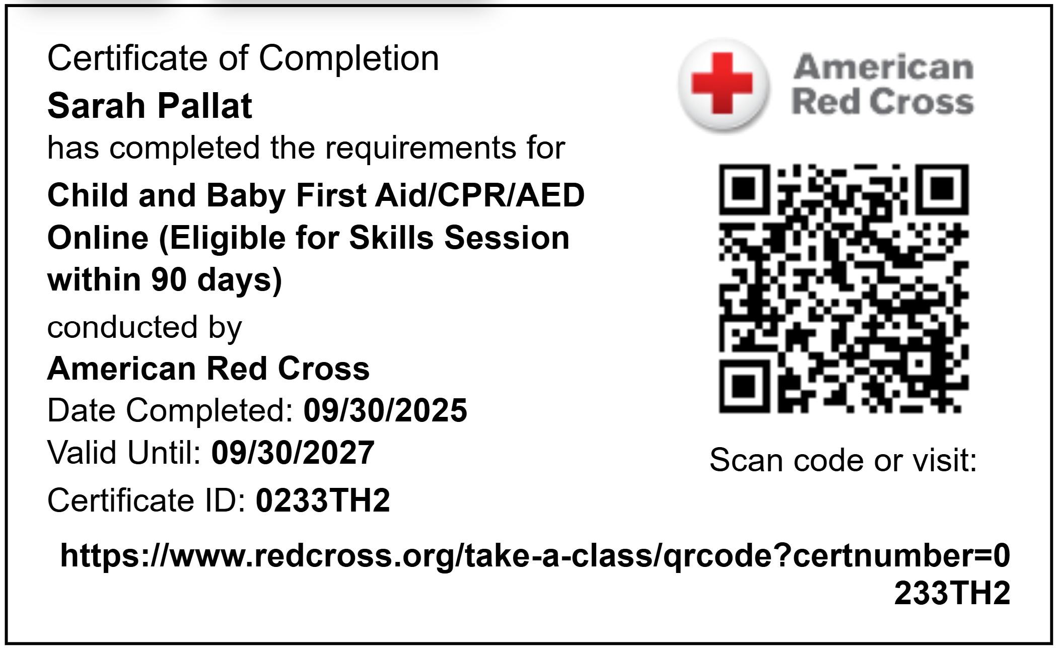 For references, reviews and recommendations, please visit my Nextdoor page and send me a request for email addresses of current and past enrolled families.