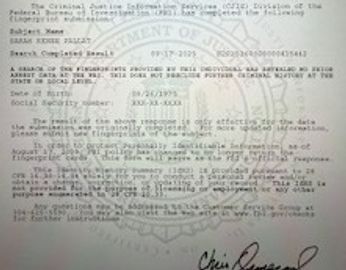 National Background/Fingerprint/FBI Criminal Report